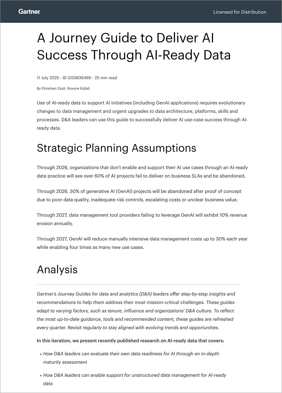 Gartner, A Journey Guide to Deliver AI Success Through AI-Ready Data,